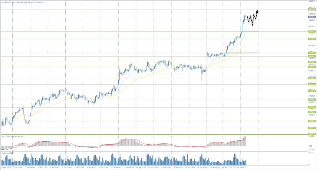On Wednesday, gold continued its strong upward momentum, rising above $4,800 per ounce and hitting a new all-time high amid surging demand for safe-haven assets due to escalating tensions over Greenland. Speaking at the World Economic Forum in Davos, the US President Donald Trump reaffirmed his determination to acquire the Arctic island. Gold was further supported by a sharp slump in the Japanese government bond market, which heightened investor fears regarding the fiscal stability of the world’s major economies. This stimulated a so-called “trade against currencies and sovereign debt,” as market participants sought to reduce risk and move into hard assets.