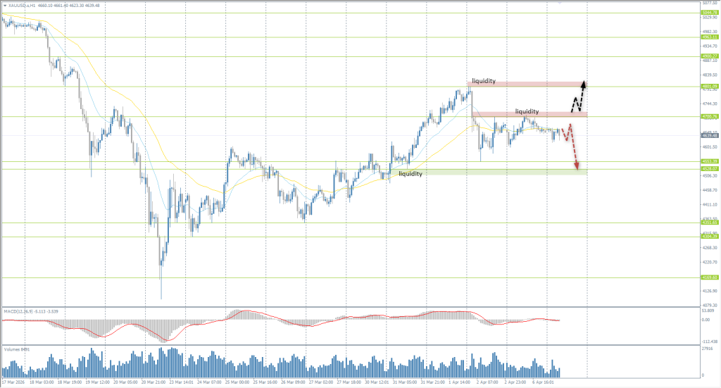 On Monday, gold showed partial recovery, rising toward 4680 dollars per ounce amid a temporary weakening of the dollar. Diplomatic efforts through Pakistani intermediaries gave the market a brief pause from aggressive liquidations. The main limiting factor remains the resilience of the US economy: March labor‑market data (178,000 new jobs) and unemployment at 4.3% reinforce expectations that the Fed will maintain its “higher for longer” restrictive policy. While Trump’s ultimatum and the risk of strikes on Iranian infrastructure provide geopolitical support, the prospect of a stronger dollar and higher bond yields undermines gold’s investment appeal.