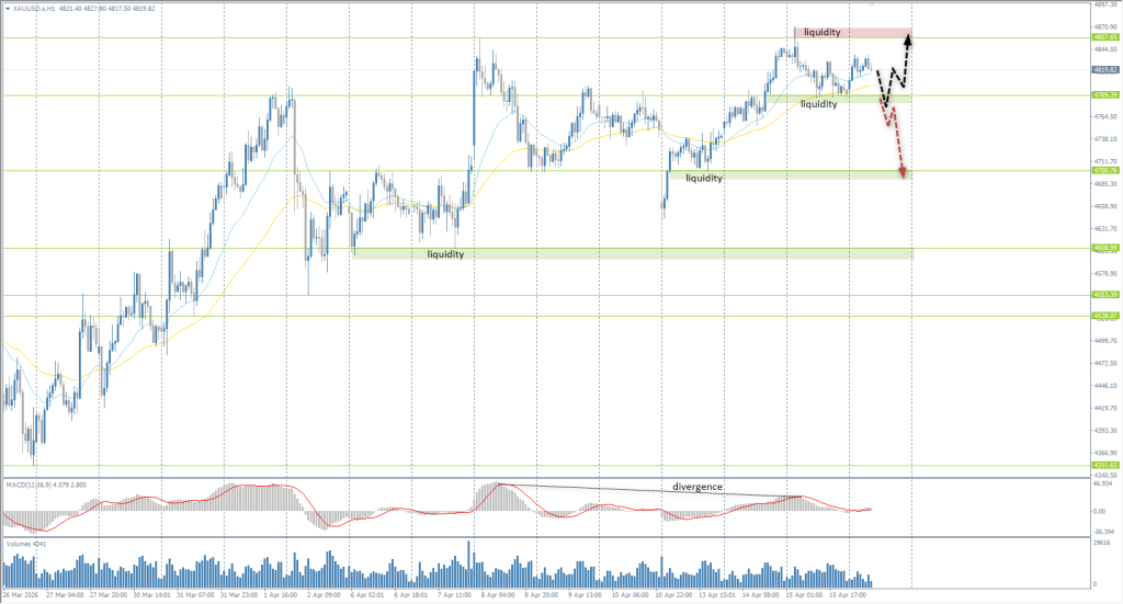 Technically, a flat accumulation is forming between 4789 and 4857. Buyers must keep the price above 4789 to maintain upward momentum. Otherwise, consolidation below 4789 may lead to a sharp sell‑off toward 4750 or even 4700. For long trades, evaluate price reaction at 4789 with a target toward 4857 and higher.