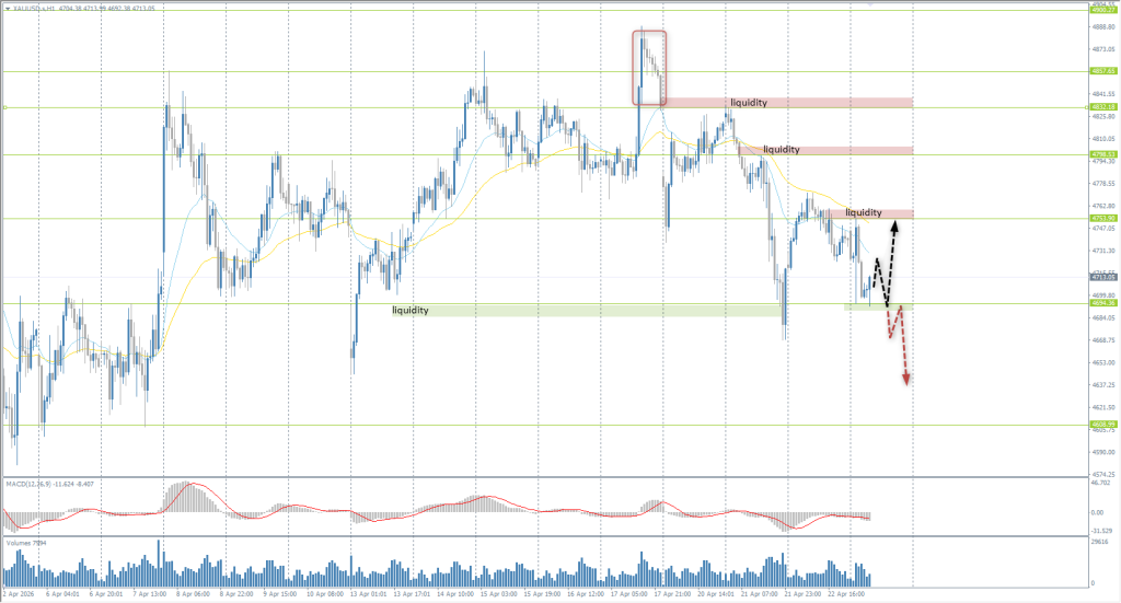 - Note: Intraday long trades may be considered from 4694 with a target of 4753. A breakout below 4694 will lead to further gold sell‑offs.