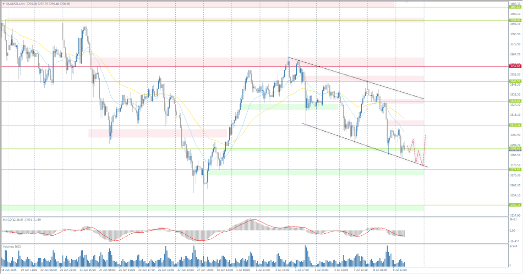 On Wednesday, the price of gold fell below $3,300 per ounce, extending its decline by more than 1% compared to the previous session, as the Federal Reserve’s moderate forecast offset concerns about renewed trade tensions. President Donald Trump ruled out further extensions of the tariffs imposed on August 1. He announced new broad measures, including a 50% tariff on copper imports, potential 200% duties on pharmaceuticals, and a 10% levy on goods from BRICS countries. Investors are now awaiting the release of the minutes of the June FOMC meeting for more information on the Fed’s stance on monetary policy.