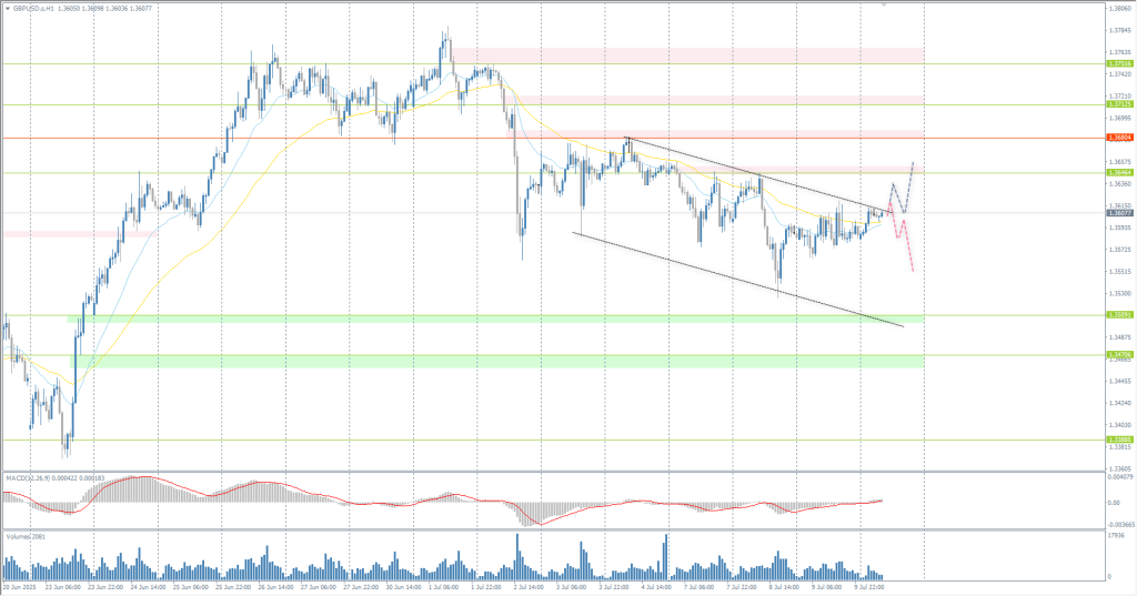 In terms of technical analysis, the trend on the currency pair GBP/USD is bearish. The price is currently trading near the EMA lines, just above the downward trend line. If sellers react here, traders may consider selling with targets at the weekly low. If the price consolidates above the downward channel, an impulsive rise to the resistance level of 1.3646 is possible.