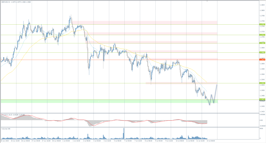 In terms of technical analysis, the trend on the currency pair GBP/USD is bearish. The British pound has been falling for three consecutive trading sessions. The price has now reached the support zone near 1.3471, where some open positions may be closed. If the price reacts, consider buying deals from 1.3471 with a target of 1.3532. There are currently no optimal entry points for sales.