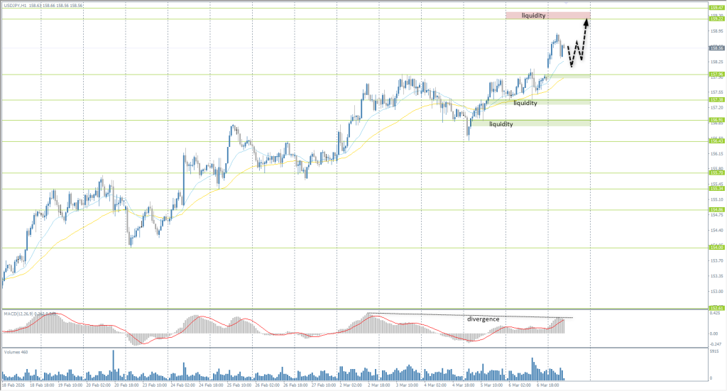 The Japanese yen weakened to 158.5 per dollar, reaching a six-week low as oil prices soared above $100. Japan’s economy is in a zone of extreme risk, as the country imports 95% of its crude oil from the Middle East, with 70% typically passing through the now-paralyzed Strait of Hormuz. To prevent a fuel collapse, Tokyo has already instructed national oil storage facilities to prepare for an emergency release of strategic reserves, which at current rates would last approximately 250 days. The yen’s fall is driven by a critical increase in import costs, sharply expanding the trade deficit. Strengthening of the USD as a primary safe haven adds further pressure.